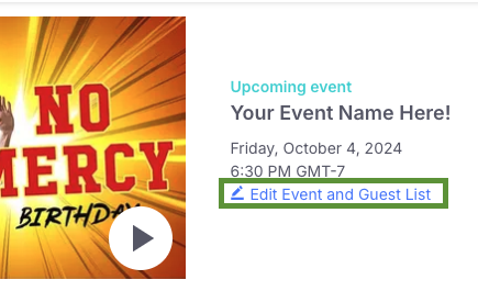 If you wish to make any changes to your Invite, click “Edit Event and Guest List”